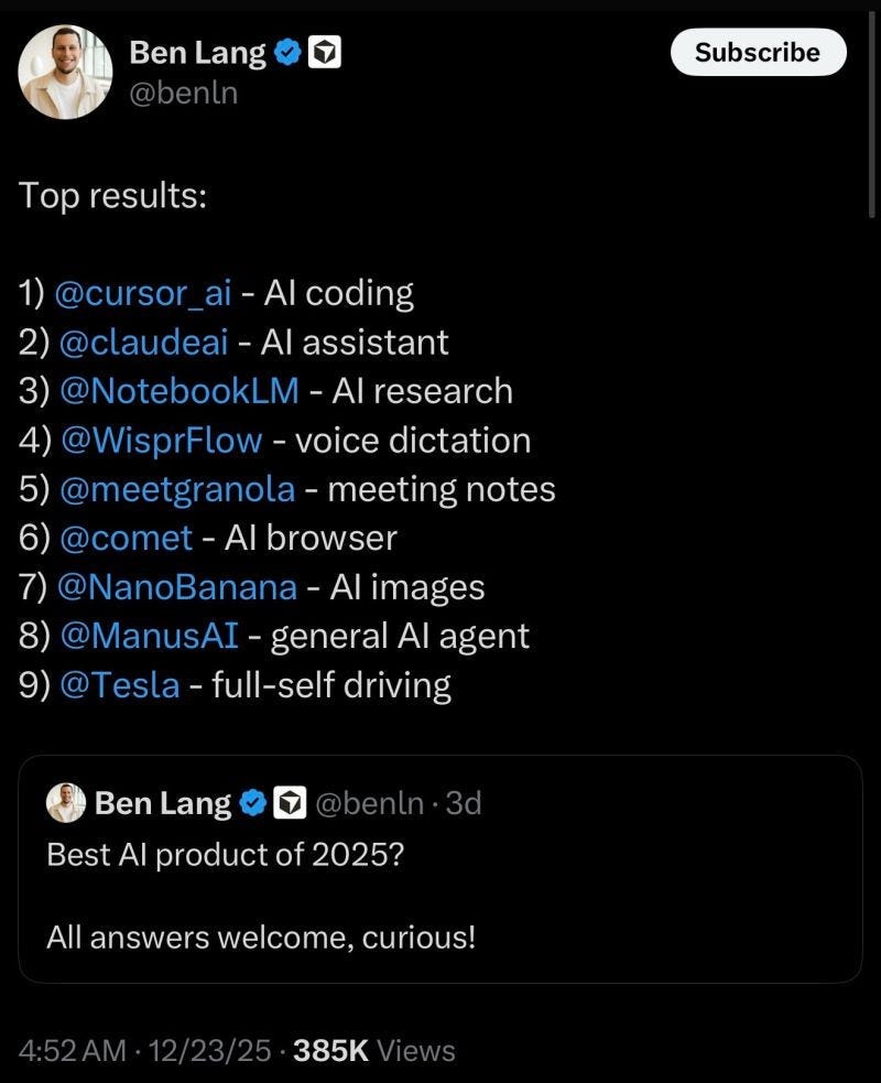 The chatbot era is over. According to Aakash Gupta, workflow-embedded AI is the path forward. Tools that invisibly slot into existing workflows (Cursor, Granola, NotebookLM, WisprFlow) drive adoption and lock-in through habit