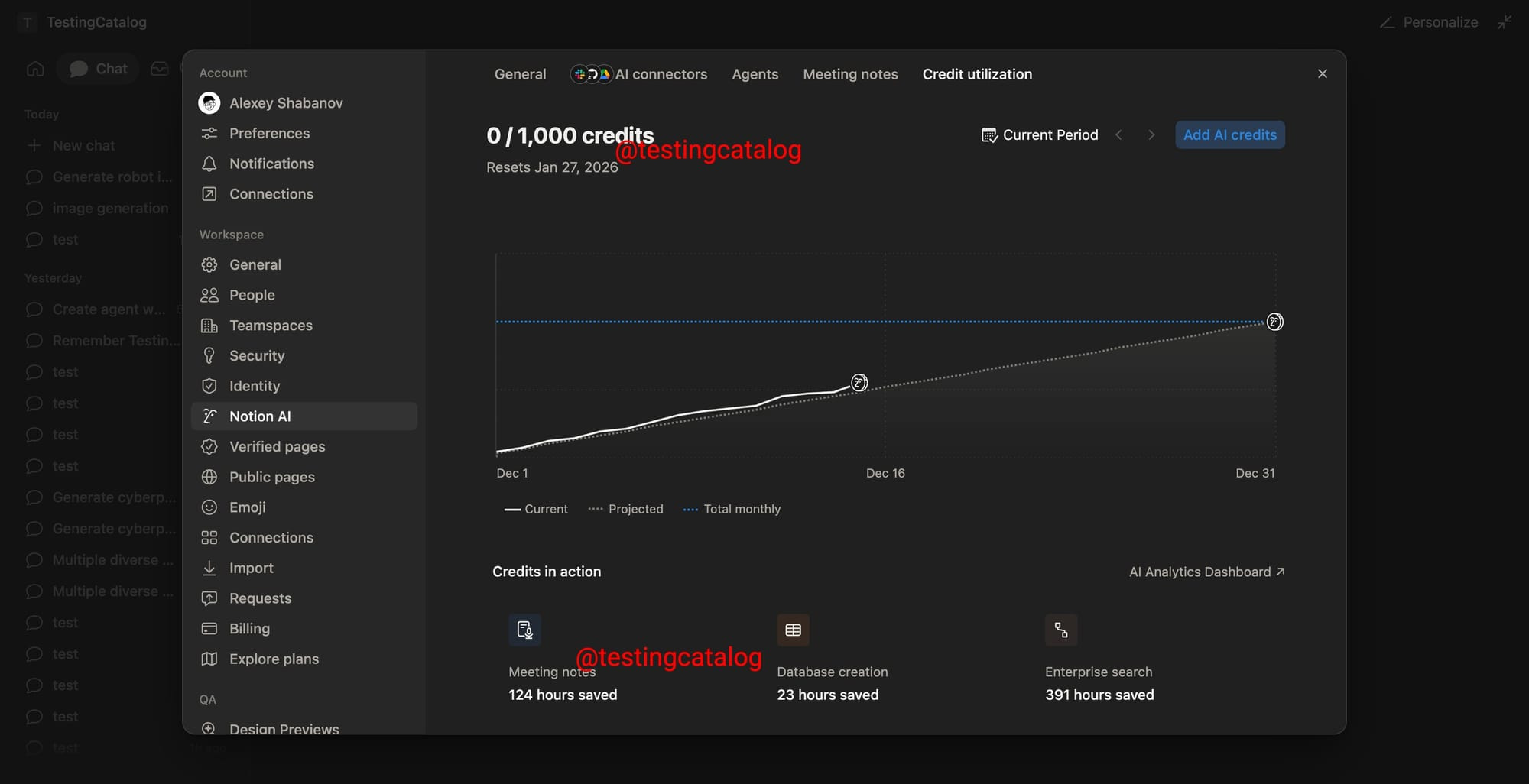 Notion tested an “AI‑first workspace” with dedicated AI tabs, an AI‑credits meter, and internal models hiding behind dessert codenames